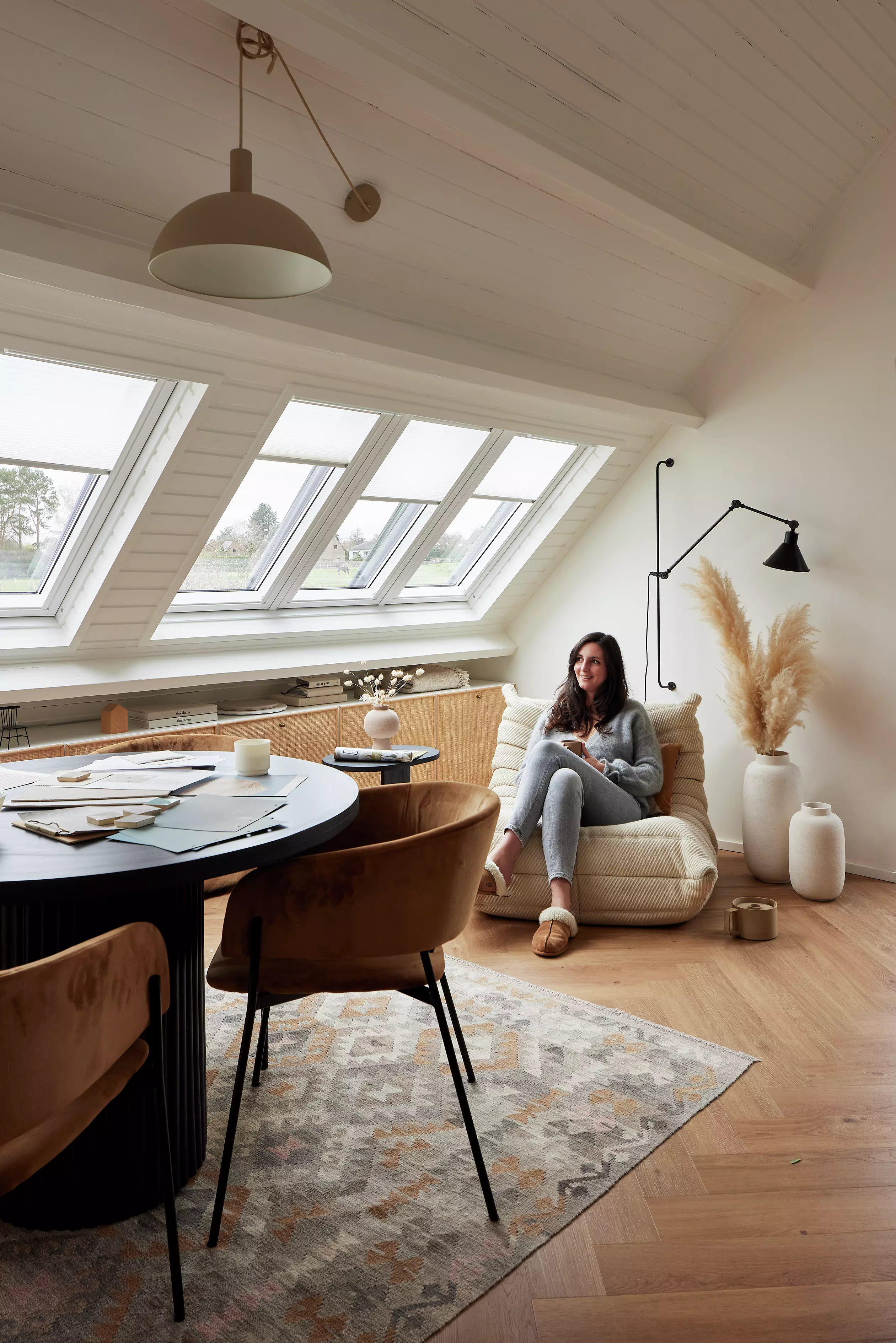 - La lumière naturelle : c’est prouvé : on travaille plus efficacement dans une pièce baignée de lumière. Les fenêtres de toit, qui font entrer la lumière par le haut, sont idéales pour créer un environnement ultra lumineux. De plus, elles permettent de placer un bureau en soupente sous la fenêtre sans aucune gêne grâce à la découpe de la toiture qui fait gagner une trentaine de centimètres en hauteur.