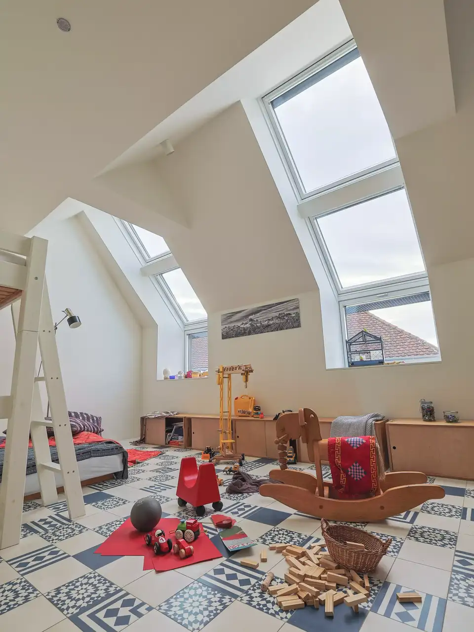 3. Une salle de jeux baignée de lumière naturelleDes fenêtres de toit stratégiquement disposées créent une salle de jeux baignée de lumière naturelle et bien ventilée pour un espace stimulant et agréable pour les enfants.
