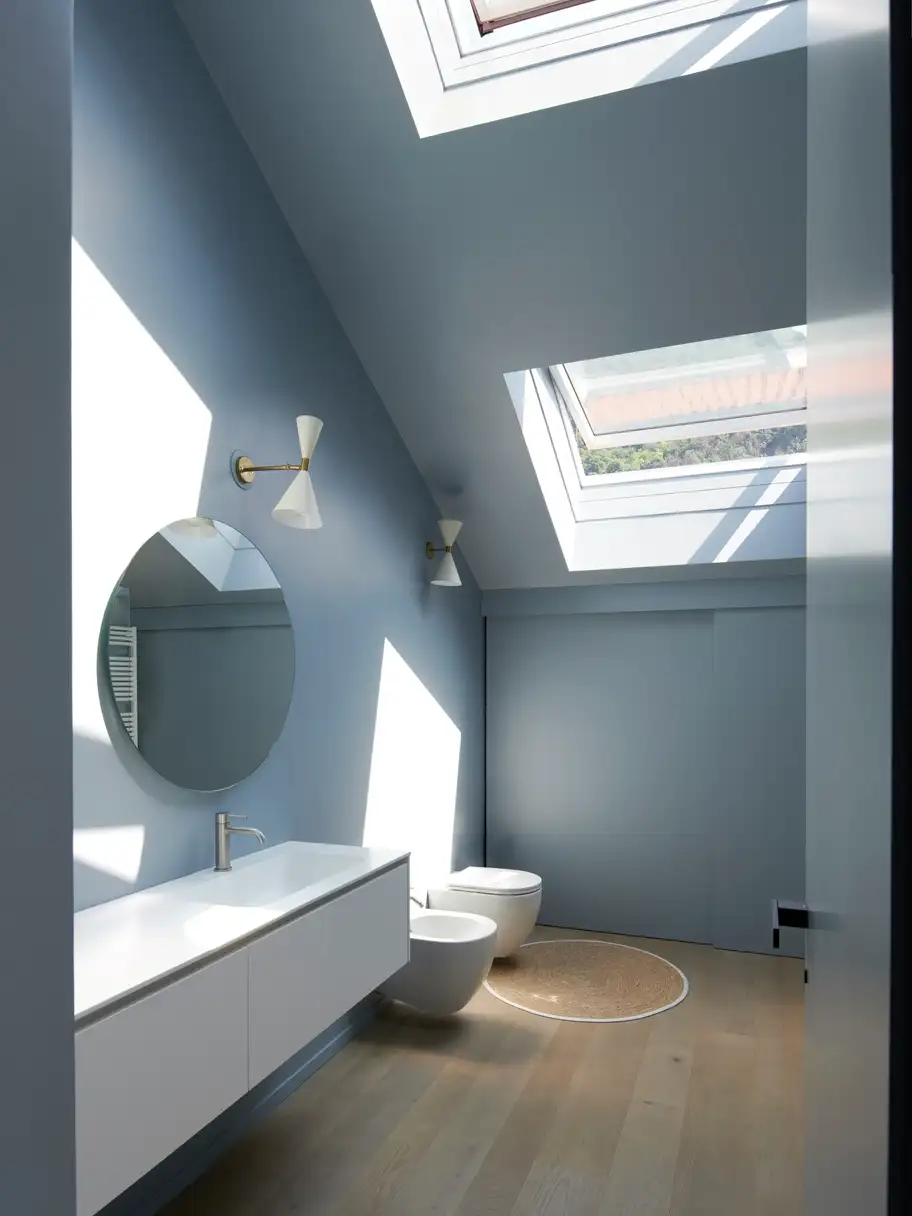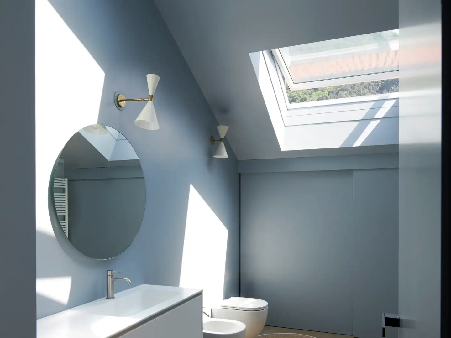 Malheureusement, certaines salles de bain n’ont pas de lien avec un mur extérieur. C’est pourquoi il est fortement conseillé d’opter pour une fenêtre de toit. C’est la solution idéale pour apporter de la lumière dans une salle de bain, tout en préservant l’intimité. Dans une salle de bain située sous les combles, l’orientation et la taille de la fenêtre sont déterminantes pour profiter au mieux de chaque rayon de soleil.
