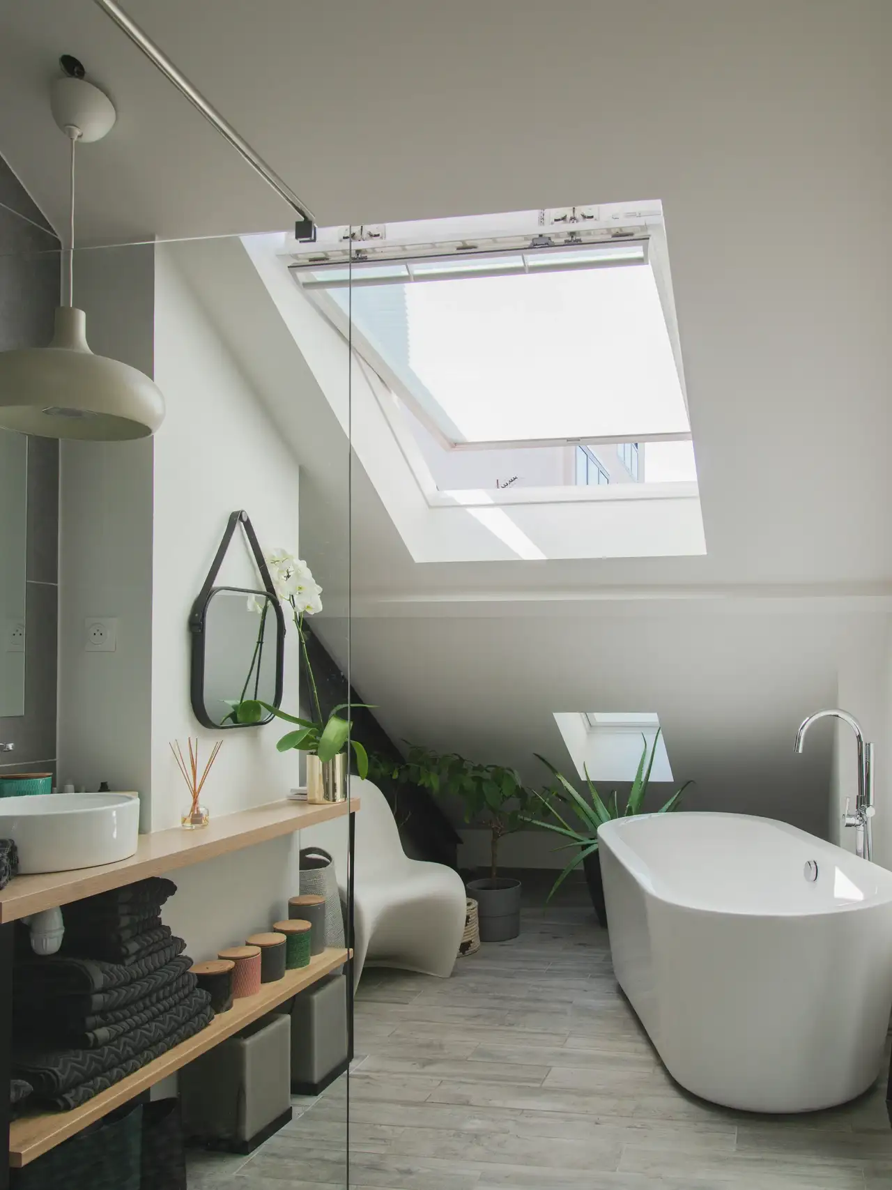 Par ailleurs, en intégrant des fenêtres de toit, vous augmentez cette sensation en permettant à la lumière naturelle de saturer la salle de bains pour rendre la pièce plus accueillante et plus grande visuellement.