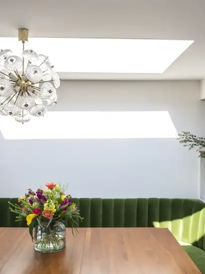 Les fenêtres de toit VELUX intensifient la lumière naturelle et créent un lien fluide entre intérieur et extérieur.